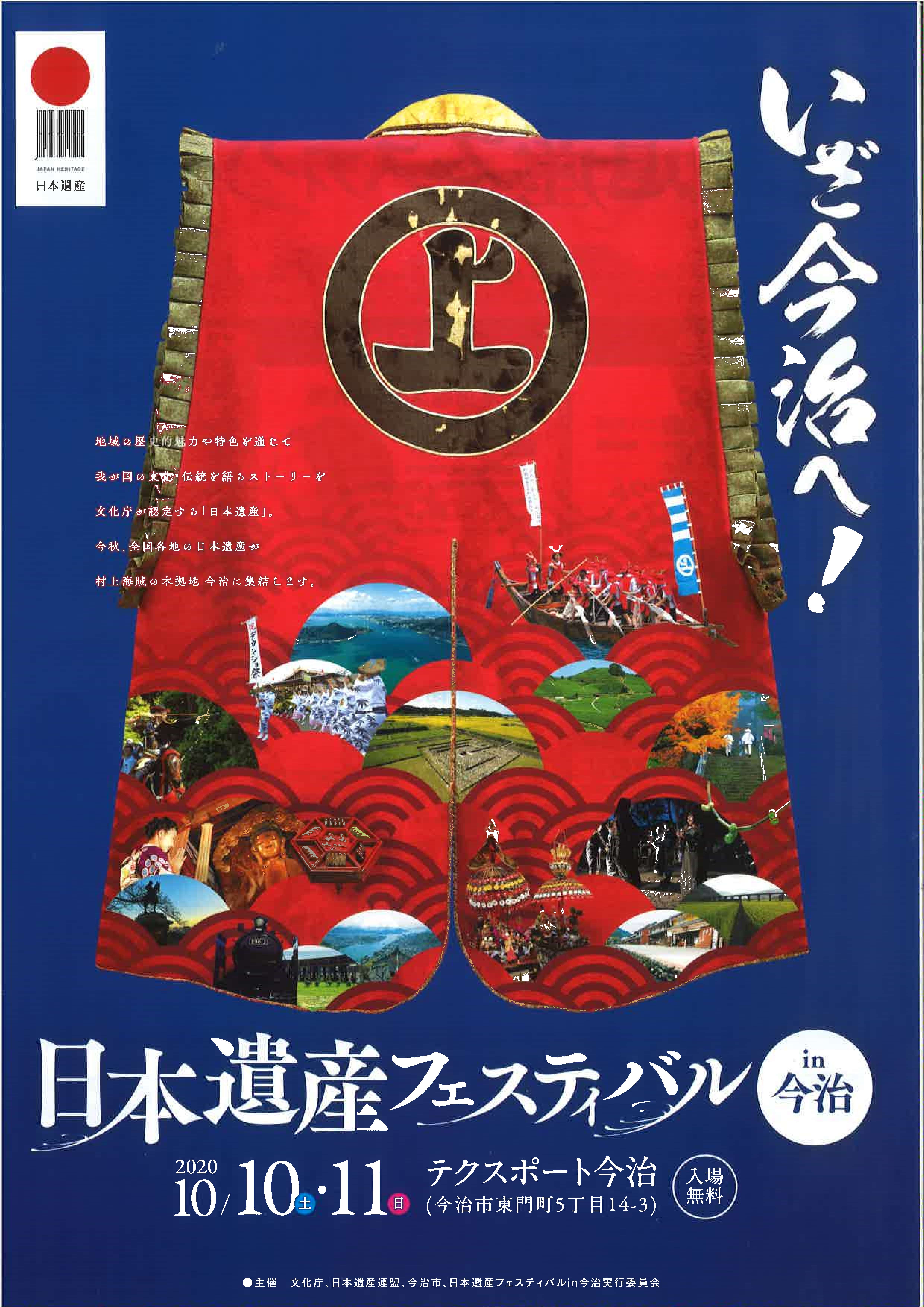 10月10日(土)、11日(日)の2日間にわたり愛媛県今治市にて「日本遺産フェスティバル」が開催されます。PRブースでの物販や体験コーナー、各種公開講座など多彩な催しが予定されていますので、奮ってご参加ください。